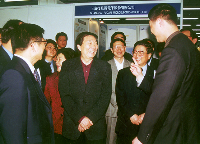 2001年4月17日,在上海張江開發區浦東軟件園參展的展示會上,時任國務院總理朱镕基、市委書記黃菊視察了復旦微電子展位,并聽取公司總經理施雷的工作匯報。